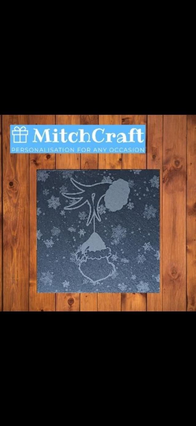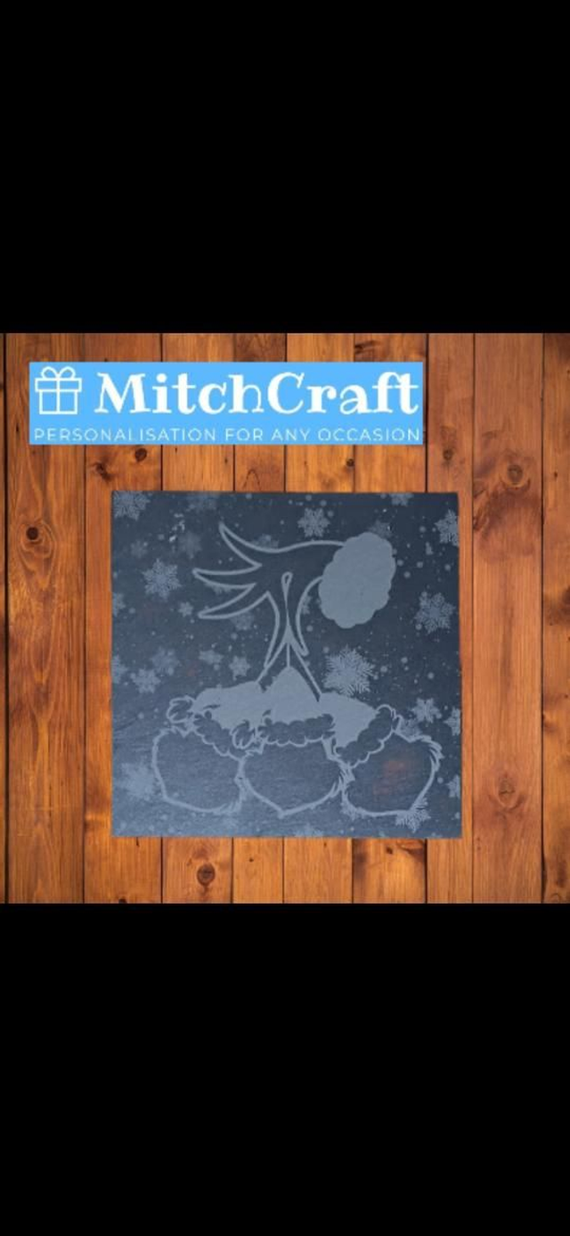 High precision laser engraved personalised Grinchmas slate coasters the perfect addition to any home this Christmas.